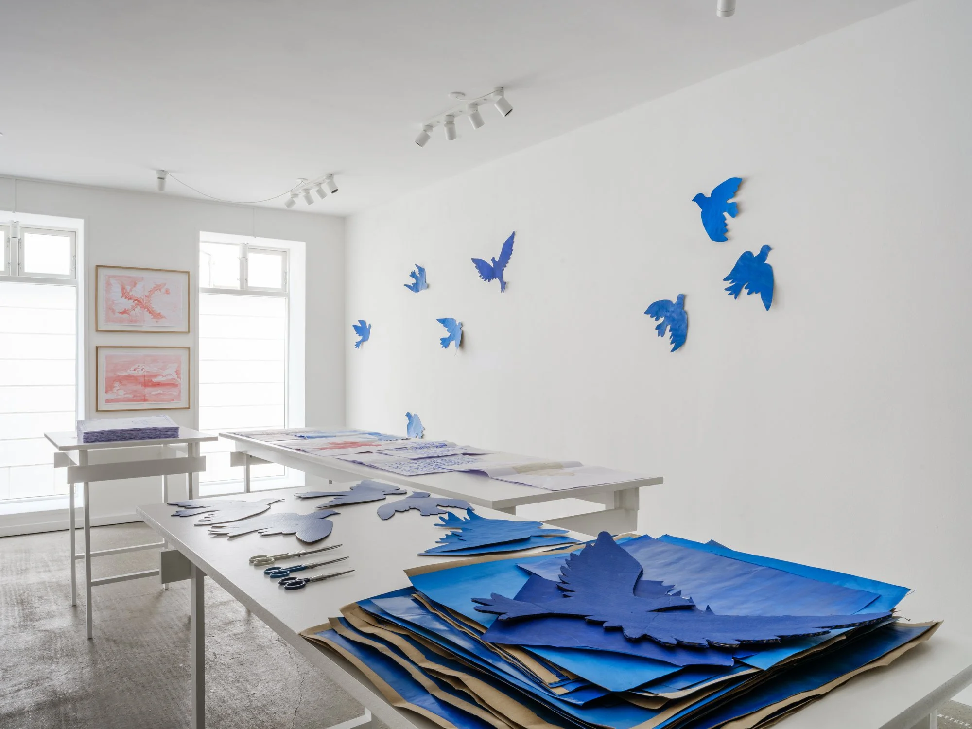 Udstillingen præsenterer en ny serie håndsyede bøger med akvareltegninger og personlige tekster, der handler om håbet som en skrøbelig, besværlig og alligevel nødvendig øvelse.