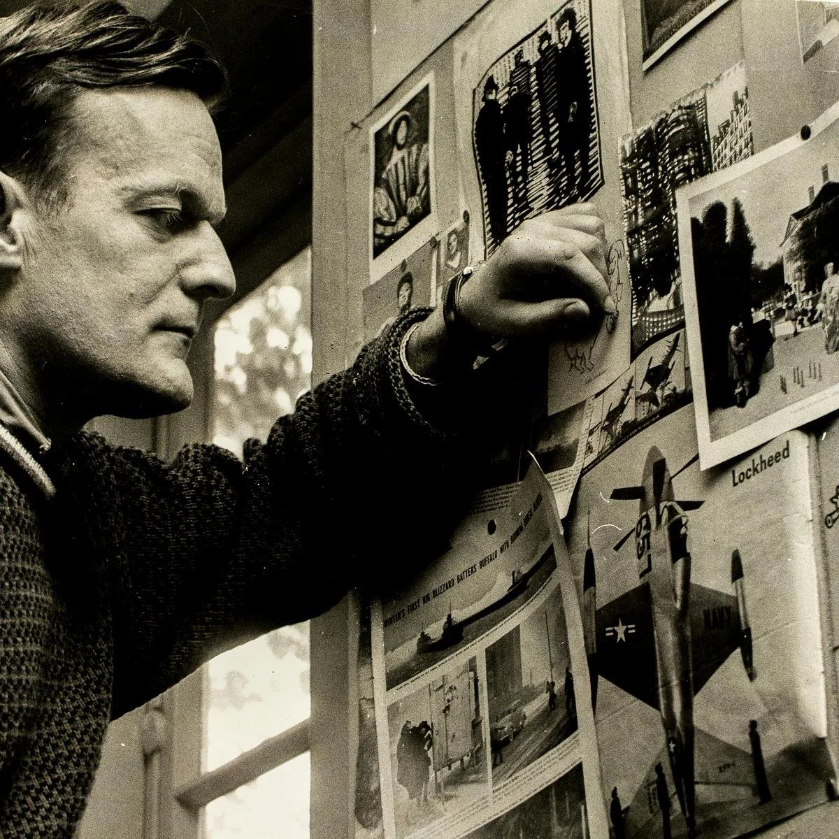 Palle Nielsen i sit arbejdsværelse, 1958 (beskåret). Privatfoto.