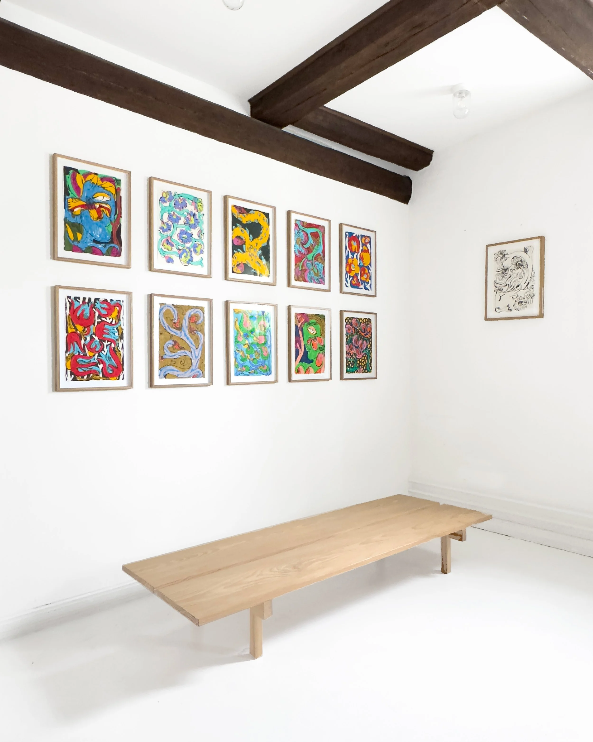 Petra Börner (b. 1973) has worked as an artist and illustrator for over twenty years, driven by a lifelong devotion to drawing, painting and making. Drawn to the line from an early age, her practice unfolds as an intuitive exploration into a parallel world—at once odd, powerful and poetic. Often incorporating found materials, she follows a fluid process where repetition and subtle shifts in colour and form shape the emotional tone, with the physical act of making central to her work.